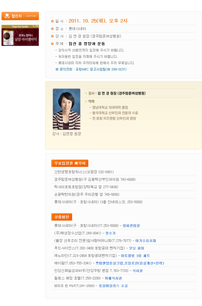 HOME 공연/문화행사 > 교양강좌 > 임신육아교실