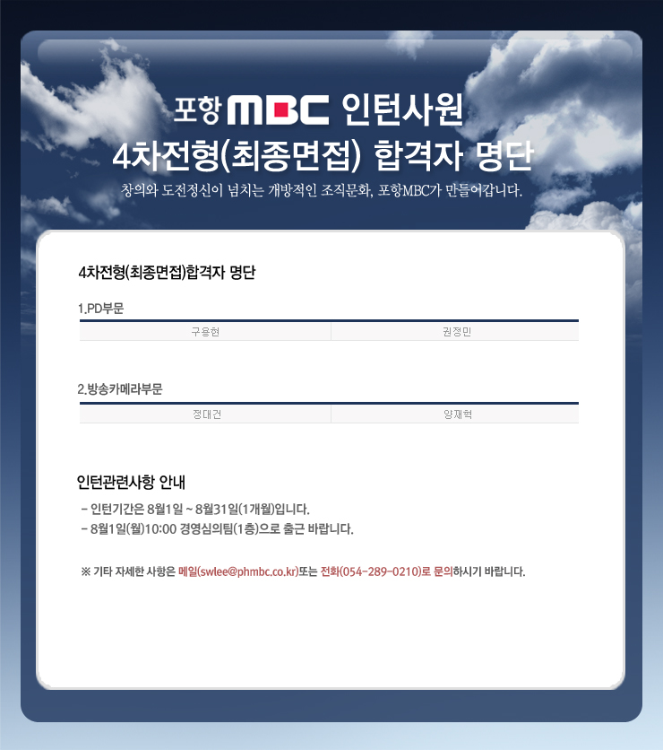 4차전형(최종면접) 합격자 명단